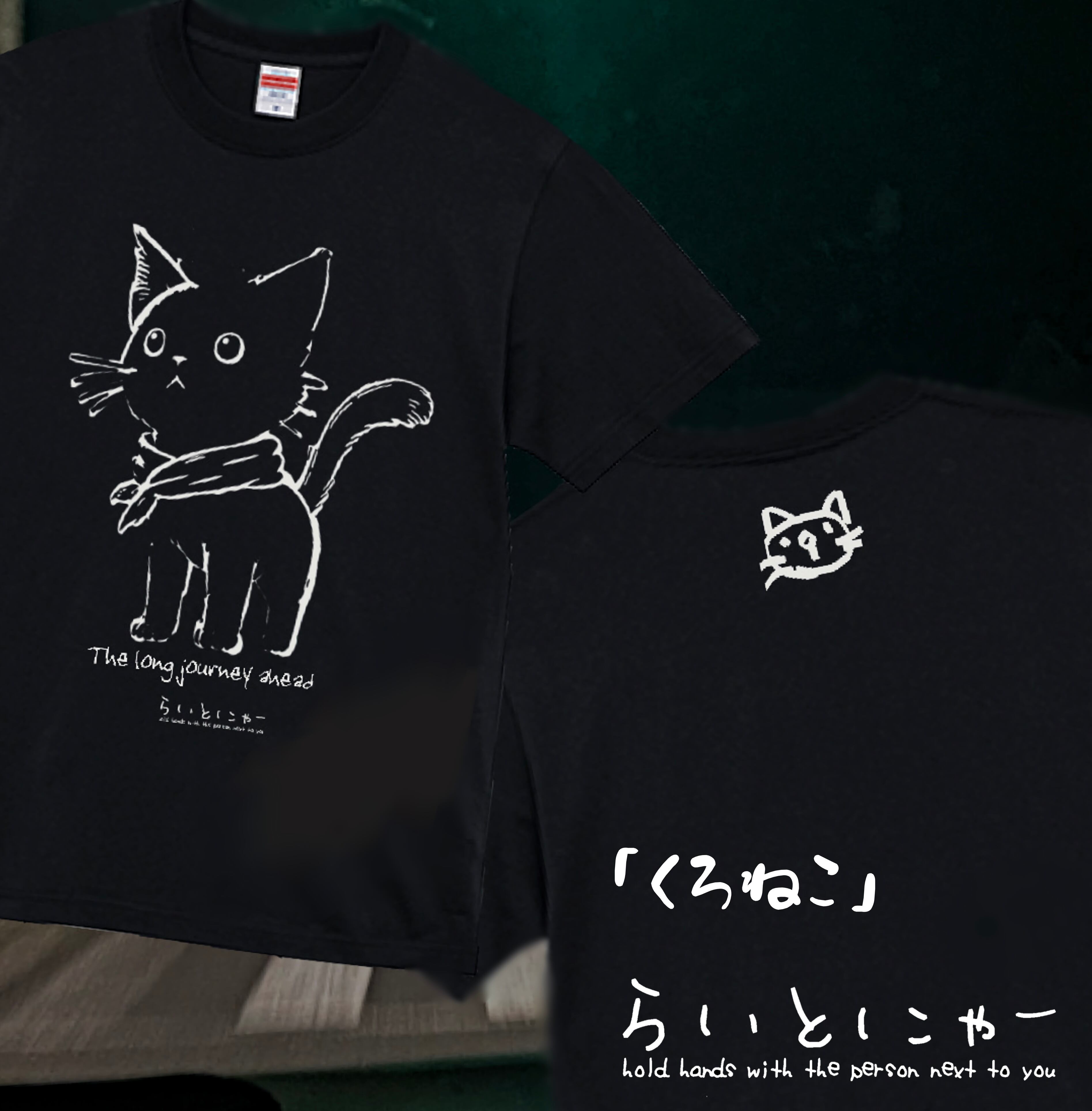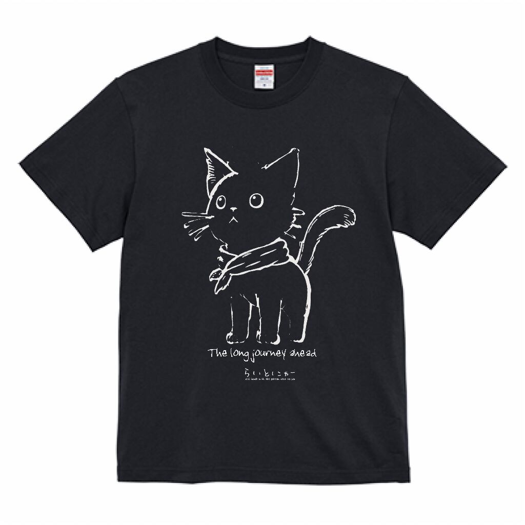 くろねこデザインの可愛いTシャツです。フロントには愛らしいくろねこのイラストが大きくプリントされています!